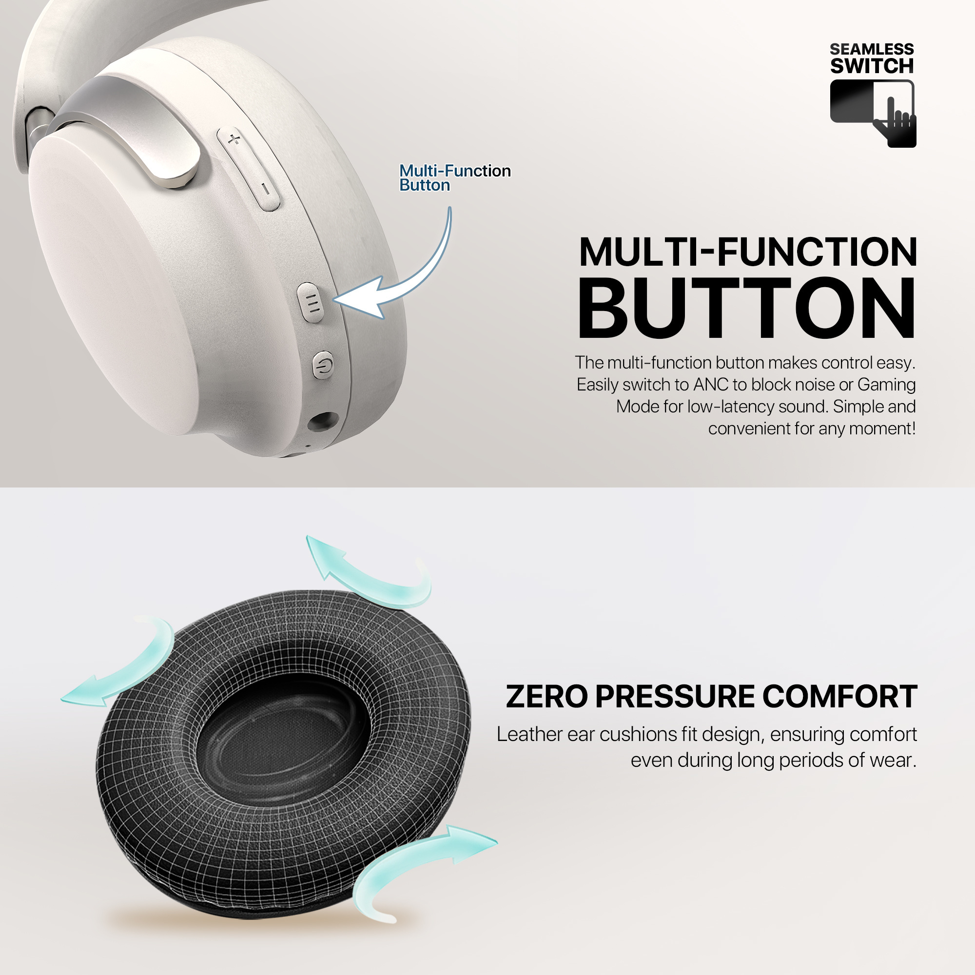Uno de los aspectos que más destacan del Fantech FLOW WH07 es su diseño Zero Pressure Comfort, pensado para ofrecer comodidad incluso durante sesiones prolongadas.