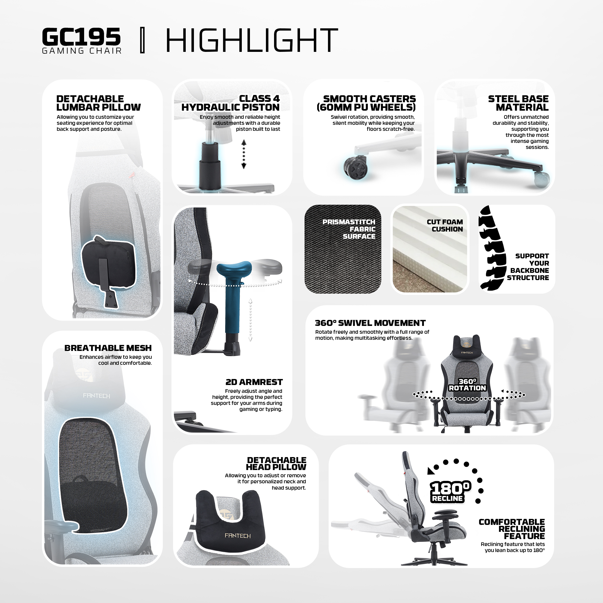 La Fantech GC195 redefine lo que significa estar cómodo frente al escritorio. Esta silla gamer ergonómica combina materiales de alta calidad, diseño respirable y una estructura robusta para ofrecer una experiencia superior tanto en setups gamers como en oficinas modernas.
