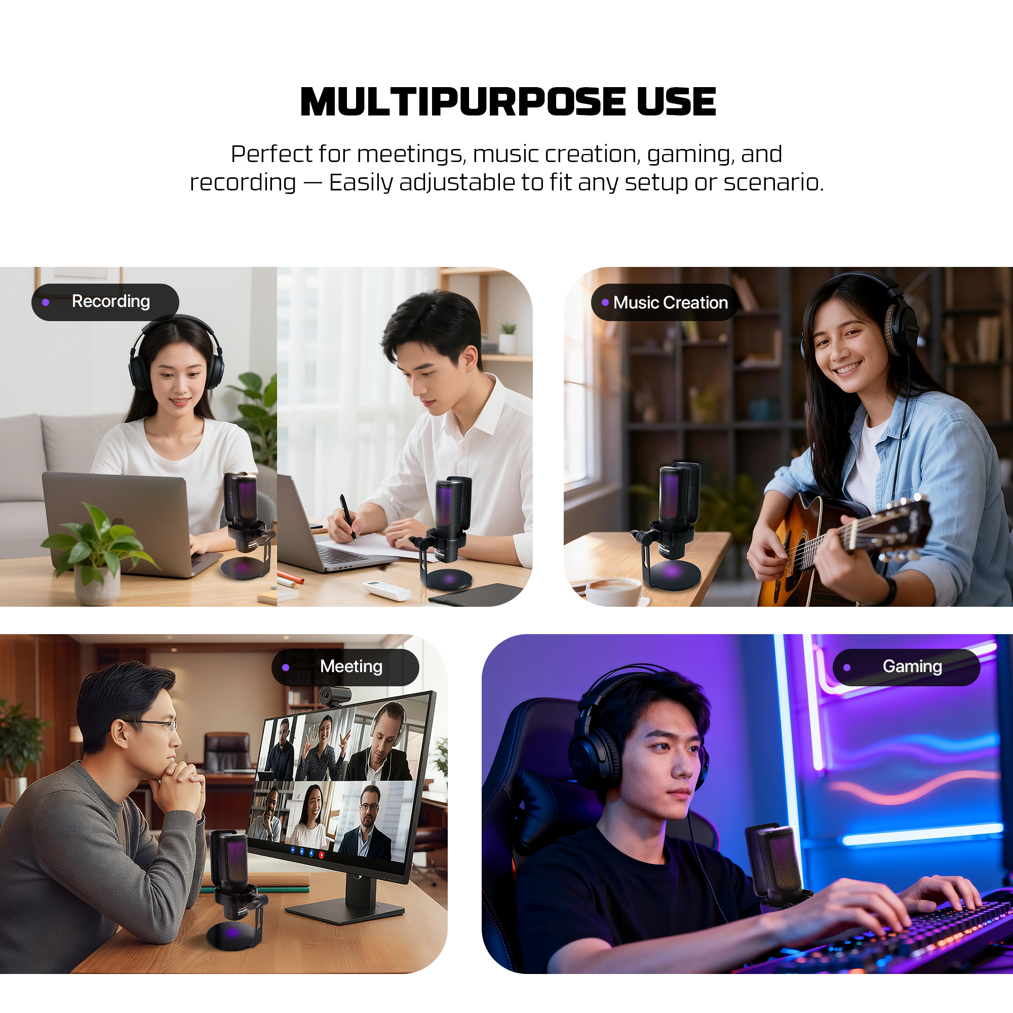 - Iluminación Rainbow: Su estética se completa con una iluminación dinámica que aporta un look increíble a cualquier setup o transmisión en vivo.