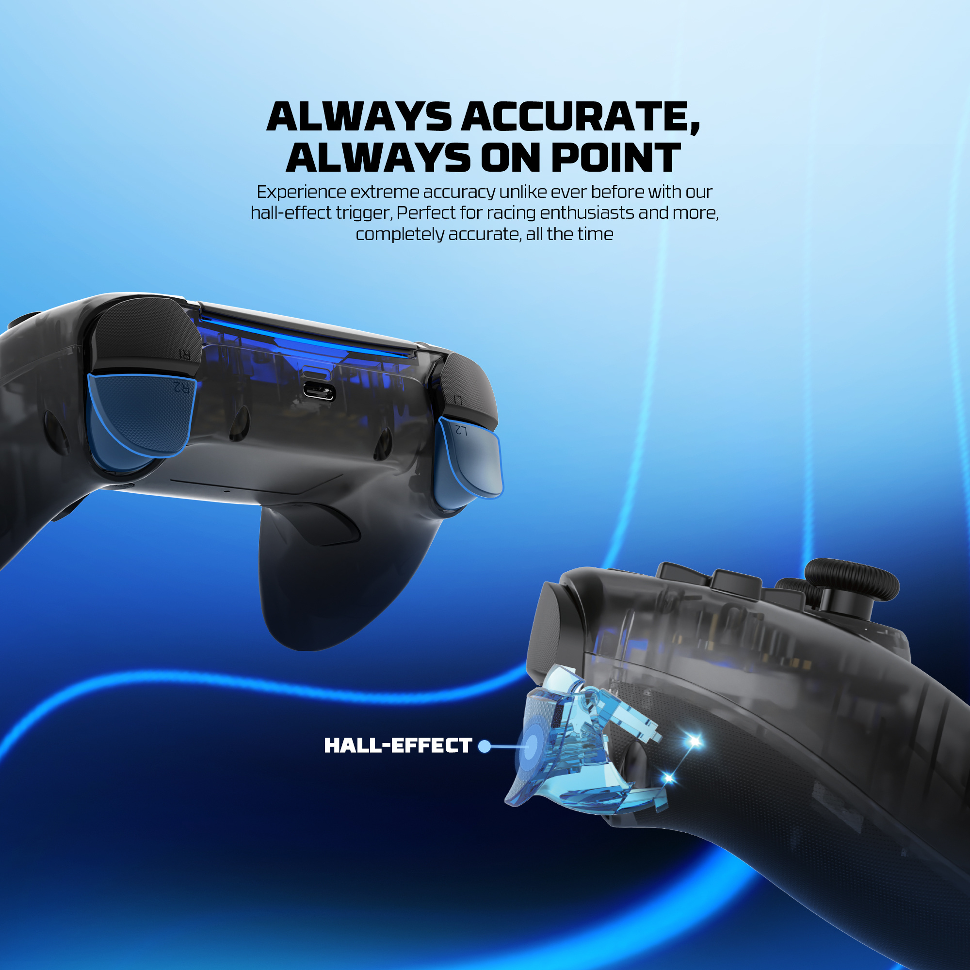 - Sticks y gatillos con tecnología Hall Effect