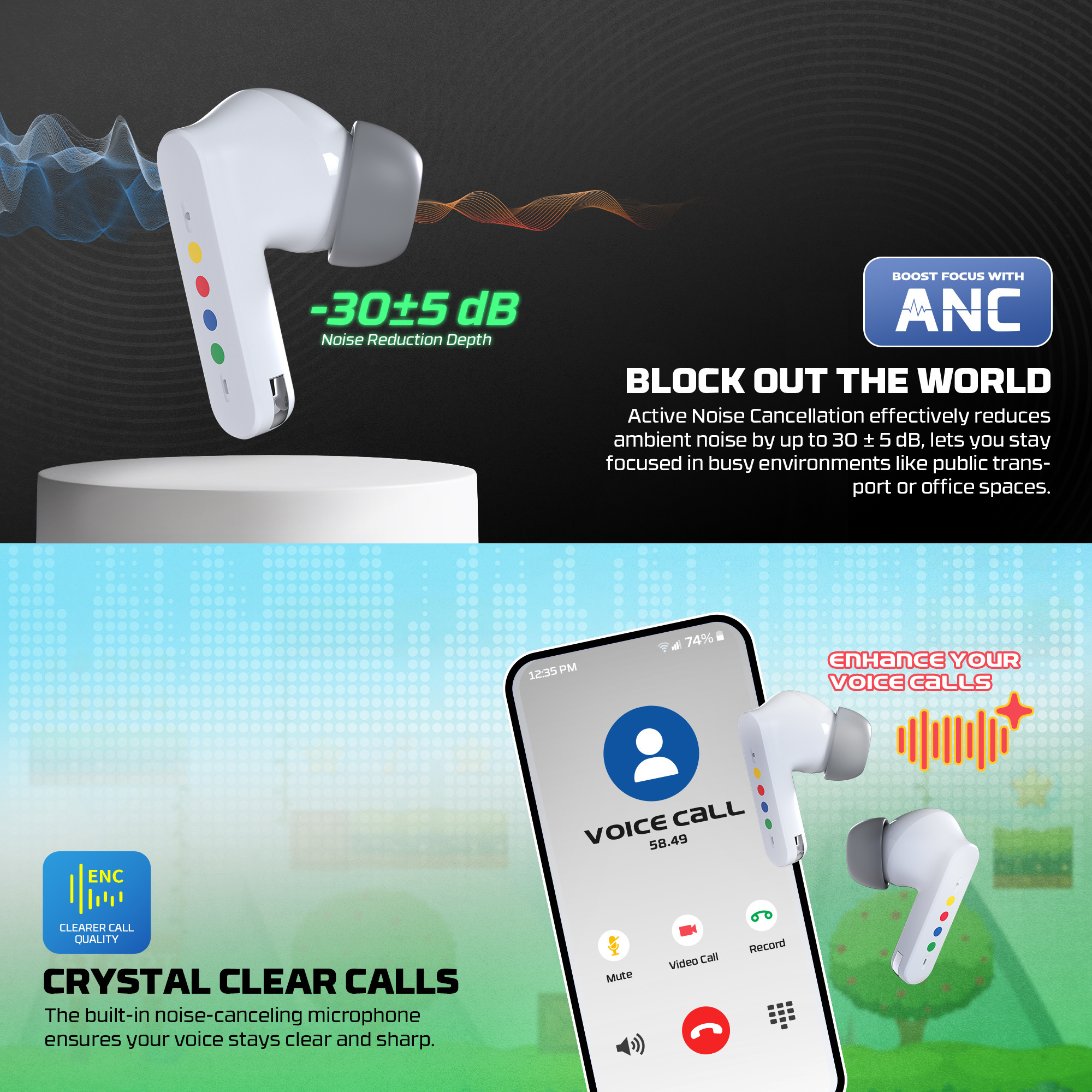 Desarrollados por Fantech, estos audífonos inalámbricos destacan por su Active Noise Cancelling de hasta -30 + 5 dB, sonido HiFi con drivers dinámicos de 10 mm y autonomía de hasta 35 horas.