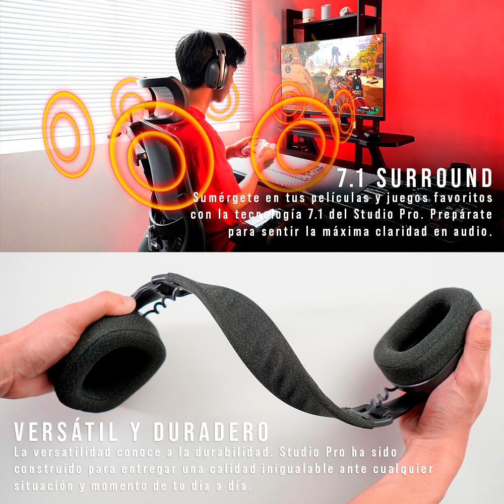 Gracias a su tecnología STRIKESPEED™ Wireless, conexión Bluetooth, y compatibilidad con cable 3.5 mm o USB Tipo-C a Tipo-A, estos audífonos ofrecen máxima flexibilidad para cualquier escenario de uso. Incluyen micrófono omnidireccional con excelente sensibilidad y sistema de cancelación de ruido.