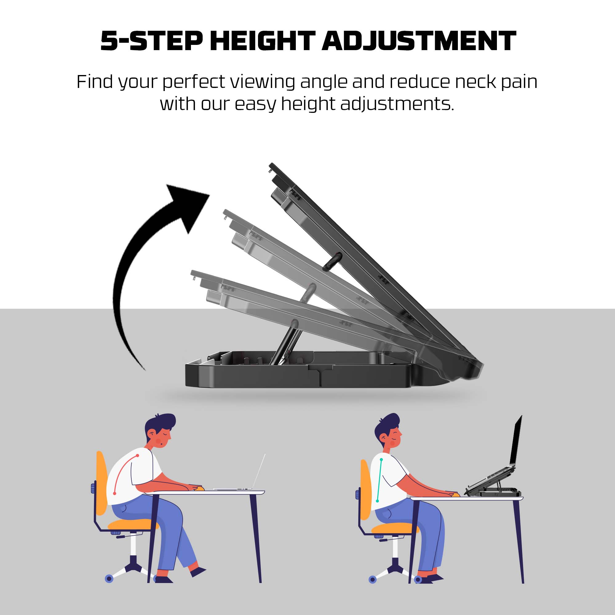 - 📏 Altura ajustable en 5 niveles, mejora tu postura y comodidad durante el uso prolongado