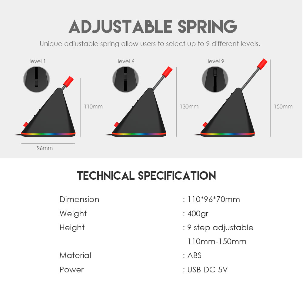 - Brazo: Soporte de goma flexible para libertad total de movimiento