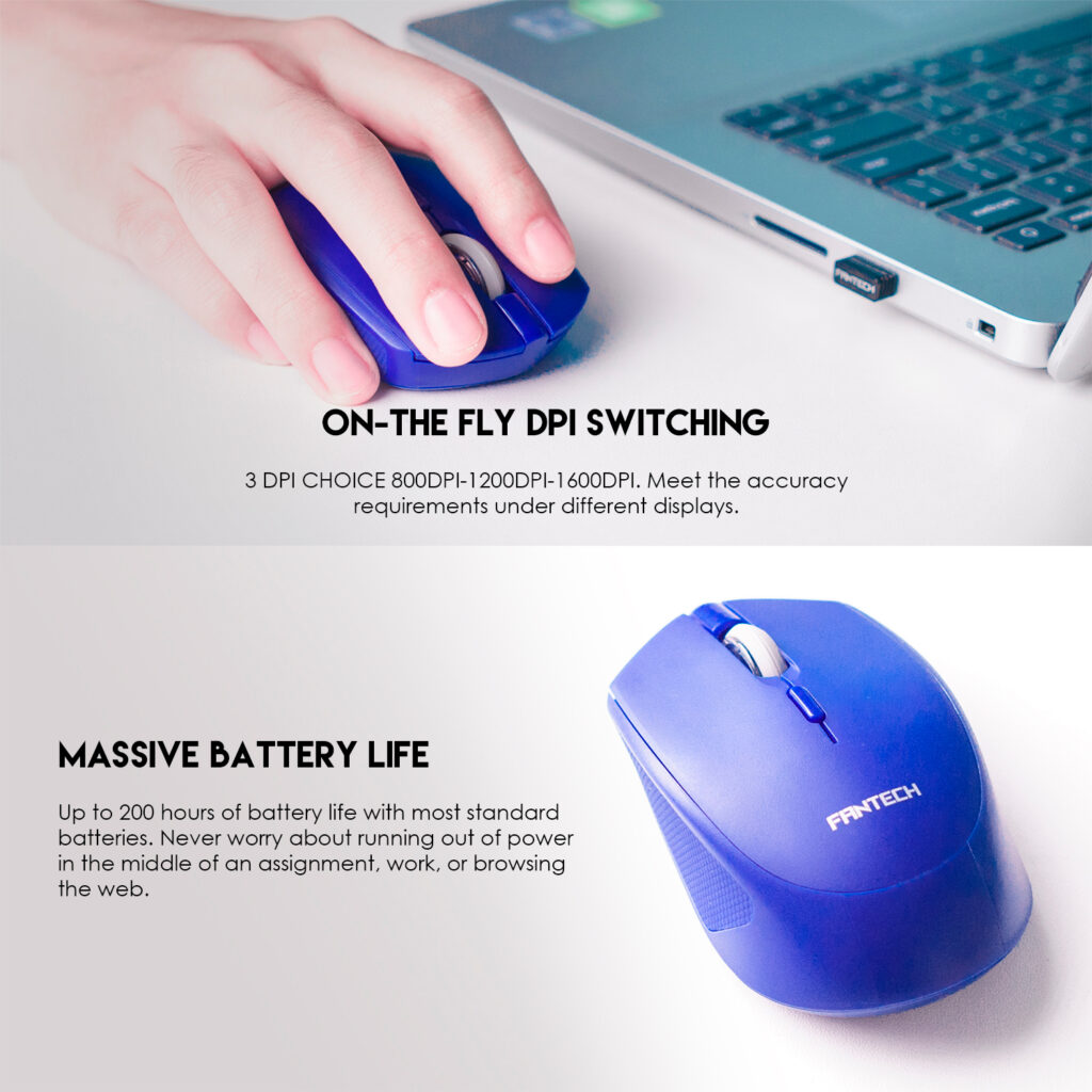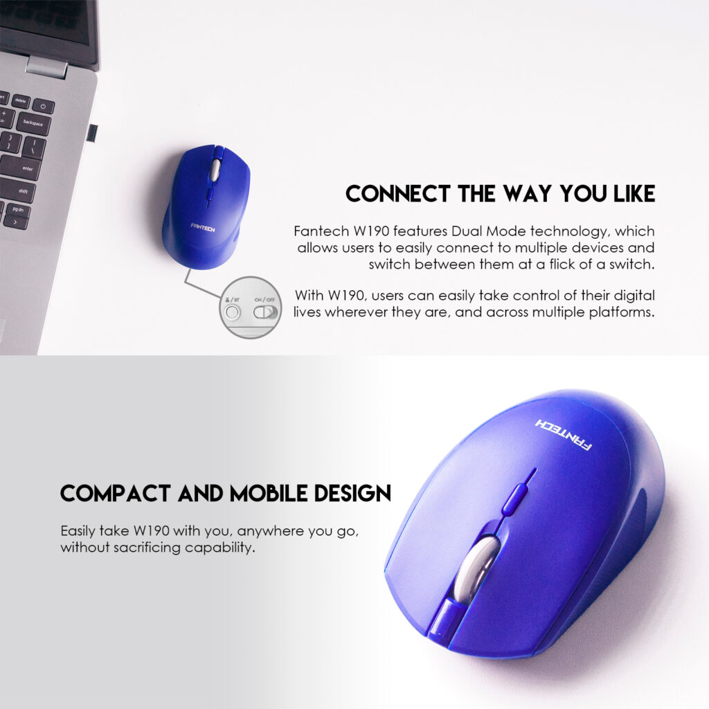 El Fantech W190 combina practicidad, silencio y doble conectividad en un diseño moderno y eficiente. Ideal para oficinas, estudio o uso diario, este mouse responde a todas tus exigencias con estilo y autonomía.