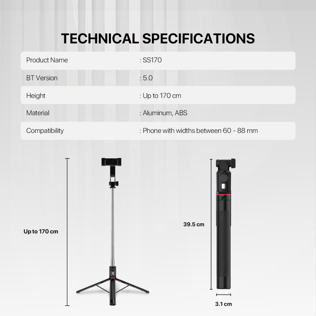 Porque combina funcionalidad, portabilidad y control inalámbrico en un solo accesorio. Ya sea para grabar reels, sacar selfies grupales o transmitir en vivo, el SS170 te da libertad total.