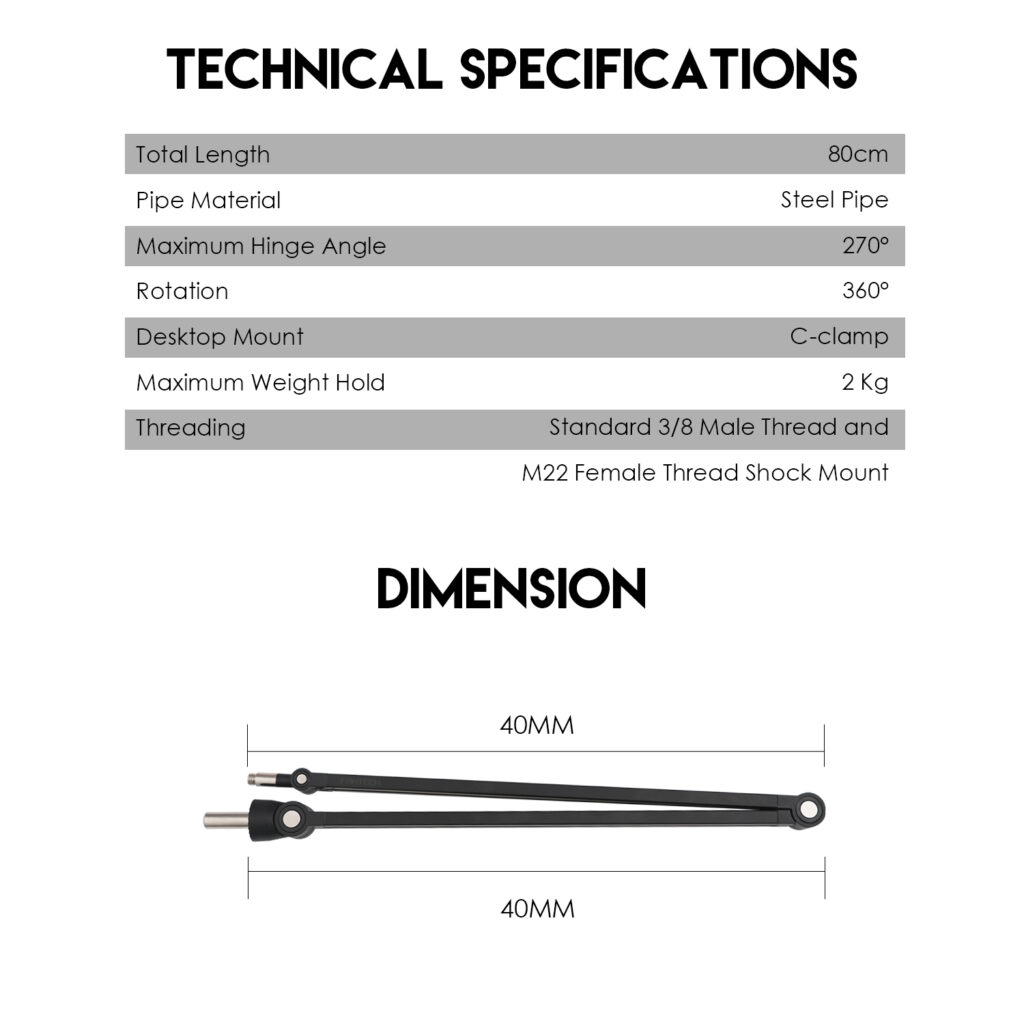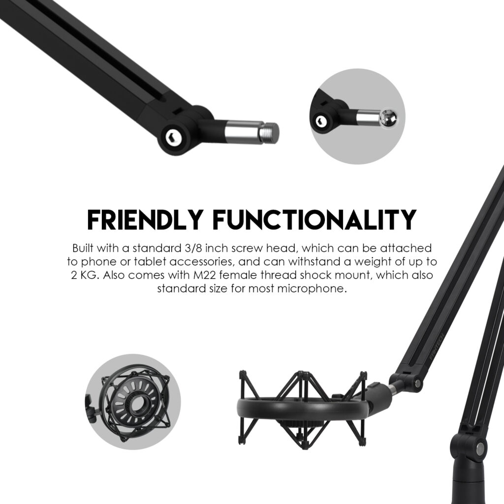 - 💪 Soporta hasta 2 kilos, ideal para micrófonos profesionales