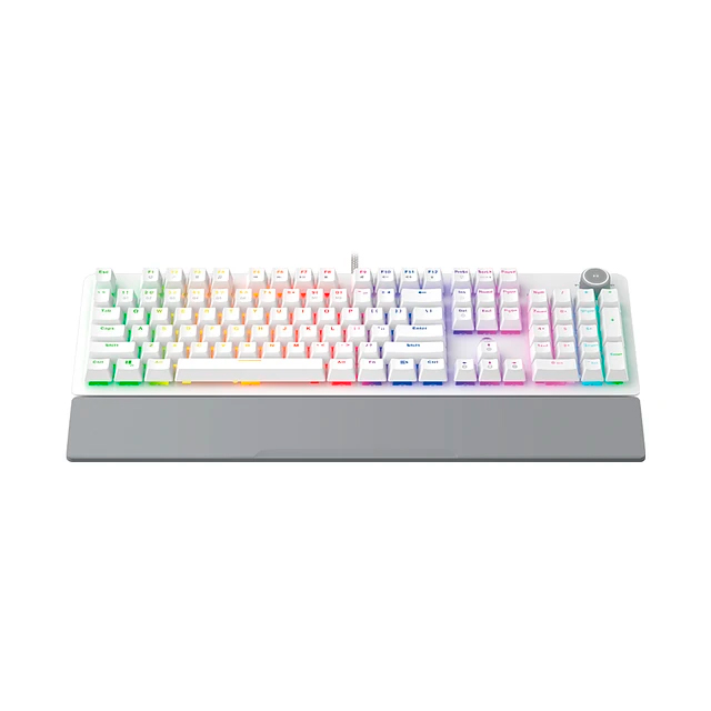 El MK853 MAXPOWER RGB es un teclado mecánico formato 100% con layout español, diseñado para ofrecer una experiencia completa tanto en juego como en productividad. Con iluminación RGB, teclas multimedia, reposa muñecas y antighosting total, es la herramienta definitiva para usuarios que exigen todo en un solo equipo.