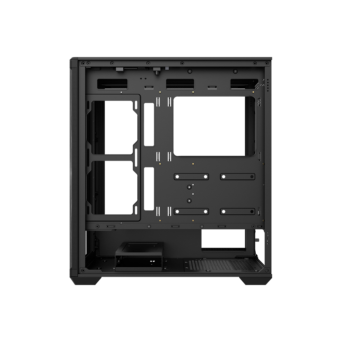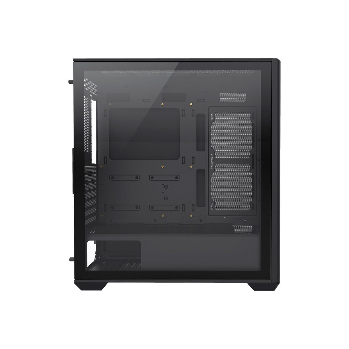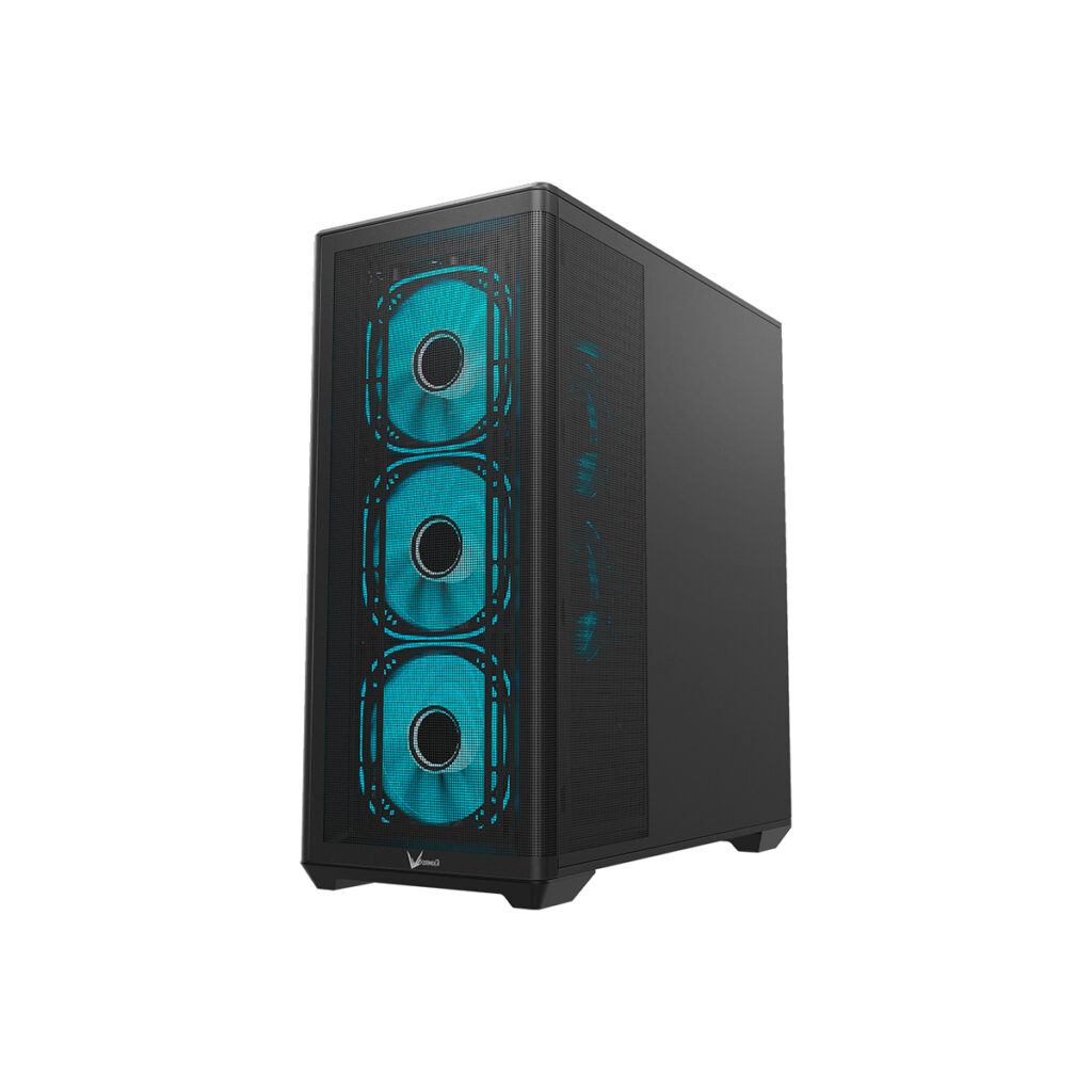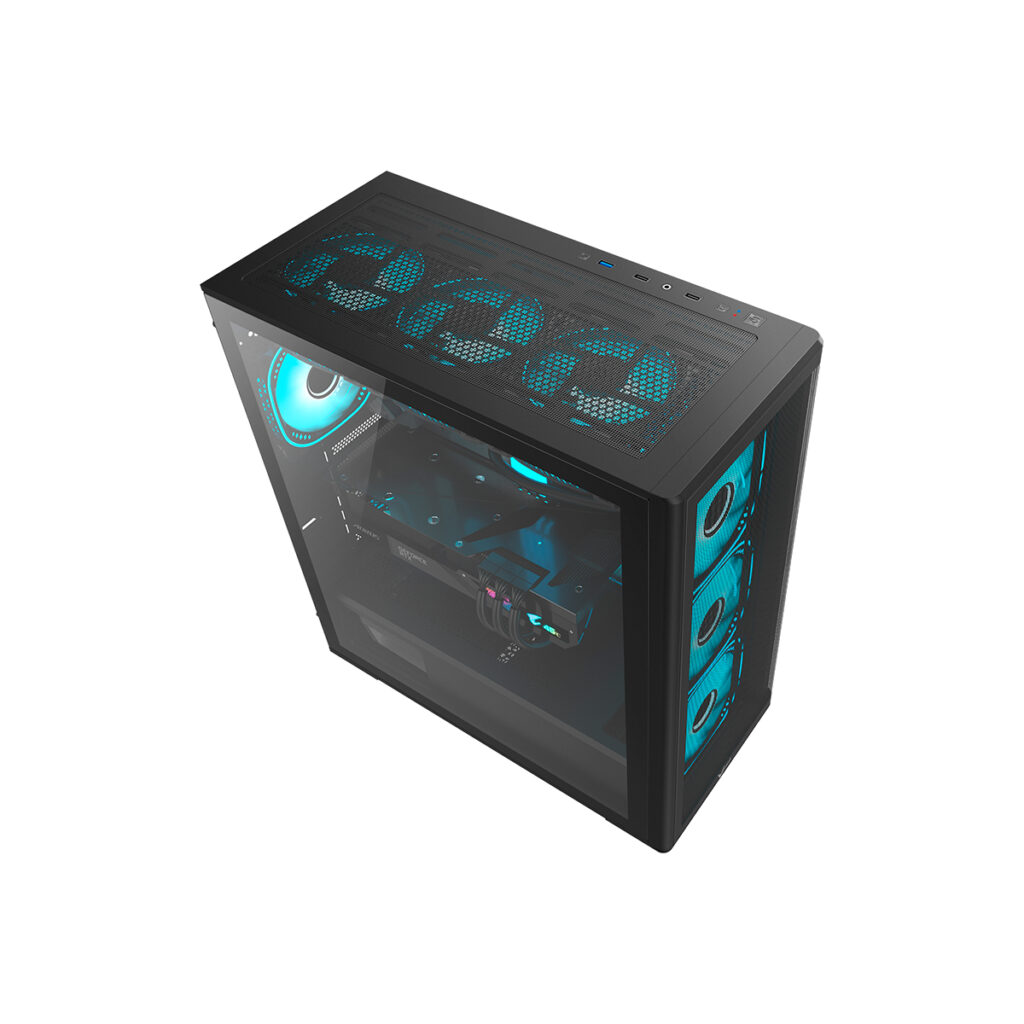 Fabricado en acero SPCC de 0.6 mm, combina estructura robusta, amplio espacio interno y ventilación optimizada gracias a sus ventiladores incluidos y múltiples opciones de expansión.