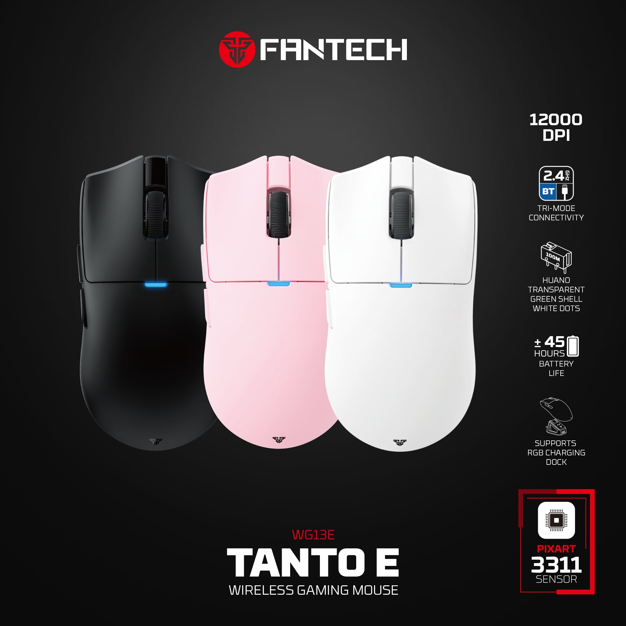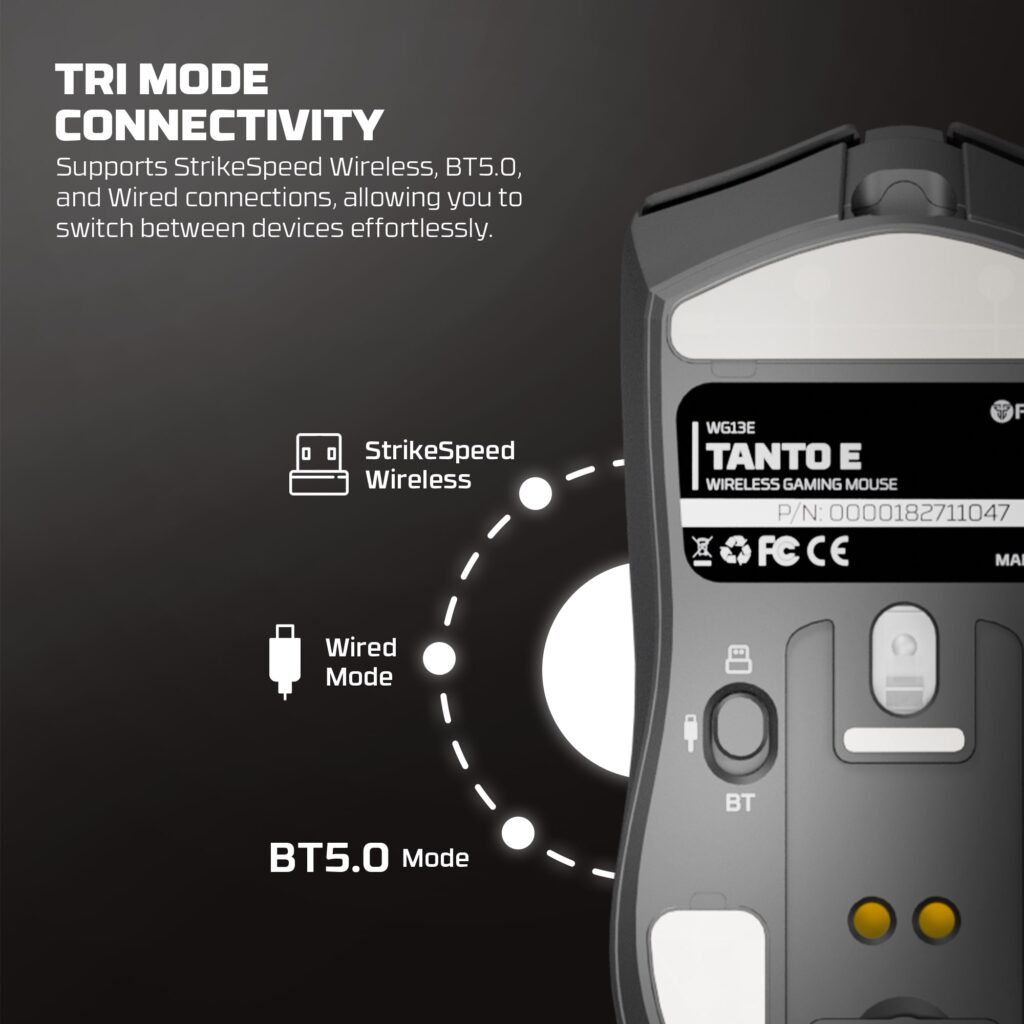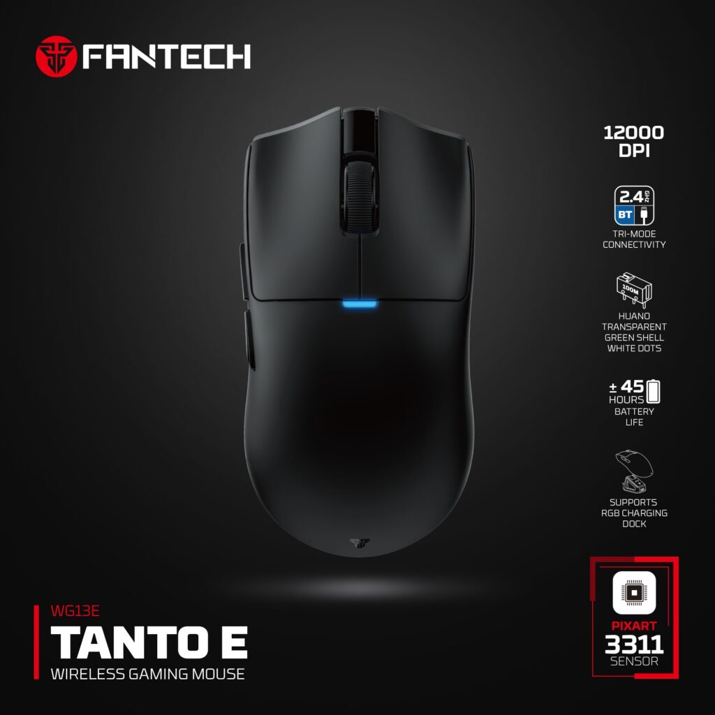 El Fantech WG13E Tanto E es un mouse gamer inalámbrico de alto rendimiento, diseñado para quienes exigen velocidad, personalización y libertad absoluta. Equipado con sensor profesional, conexión tri-modo y un dock RGB de carga, es una verdadera bestia compacta y liviana.