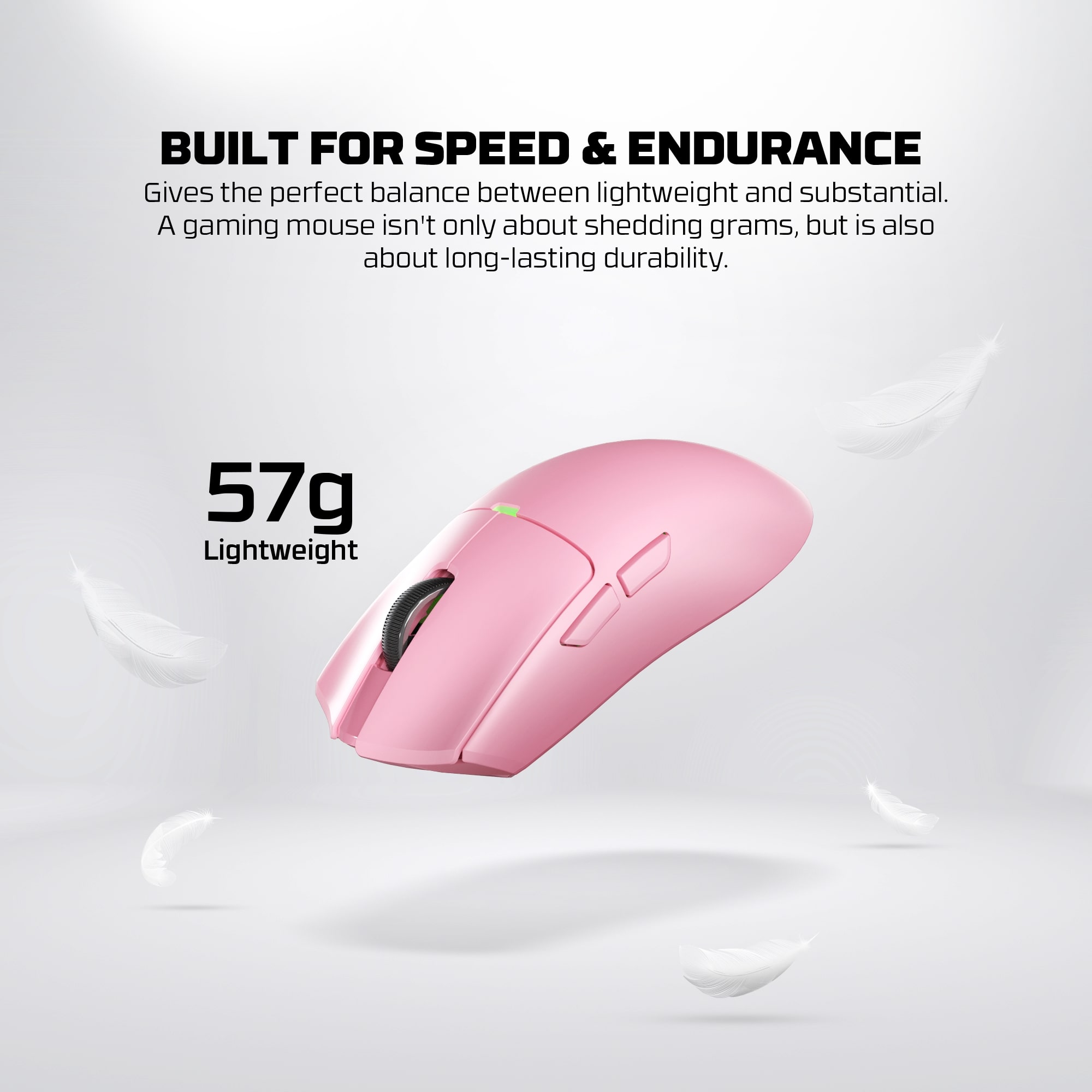 - 🖐️ Peso ultra ligero de solo 57 gramos, para movimientos rápidos y sin fatiga