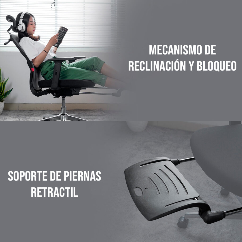 - 🦵 Soporte de piernas retráctil, relaja tus piernas cuando más lo necesitas
